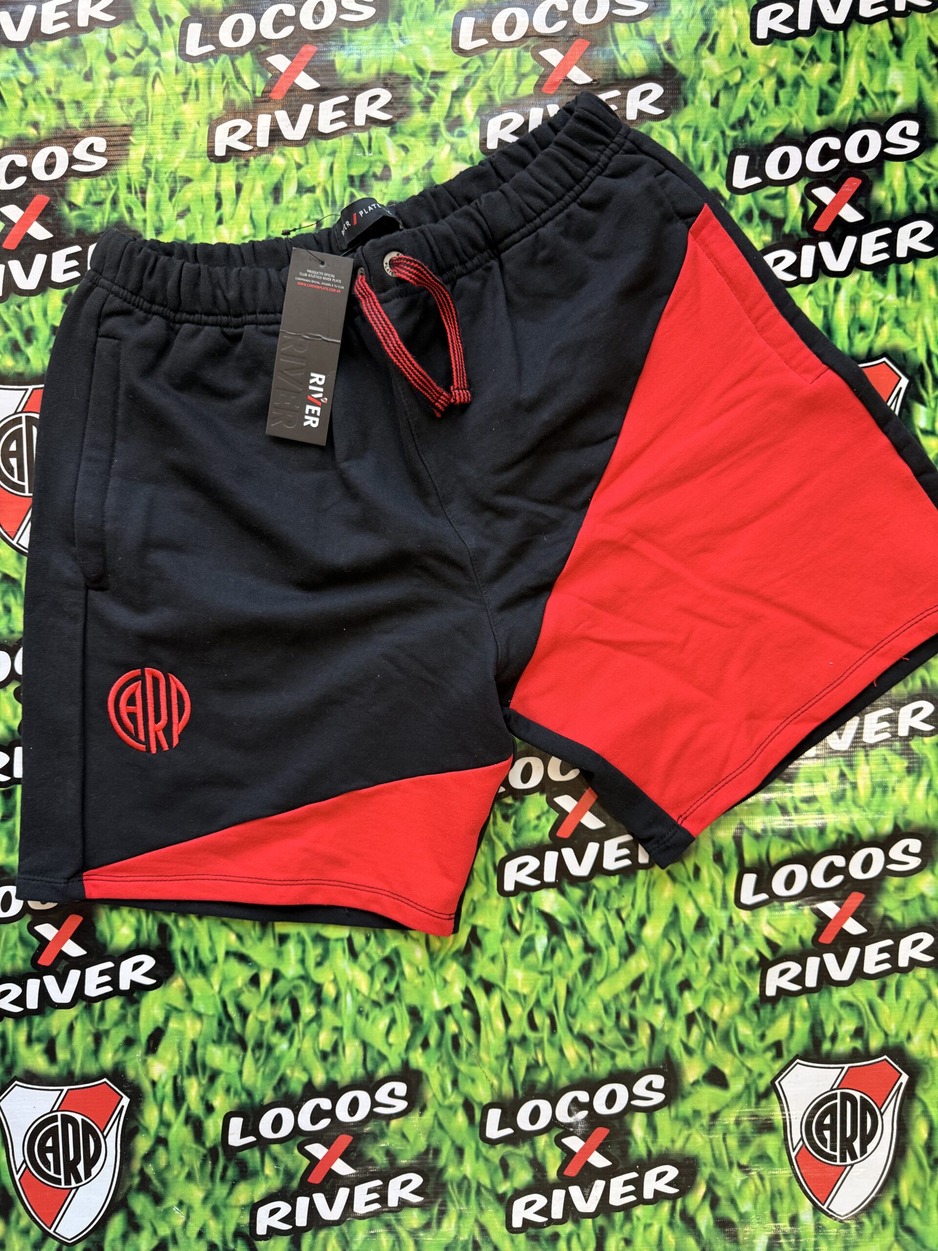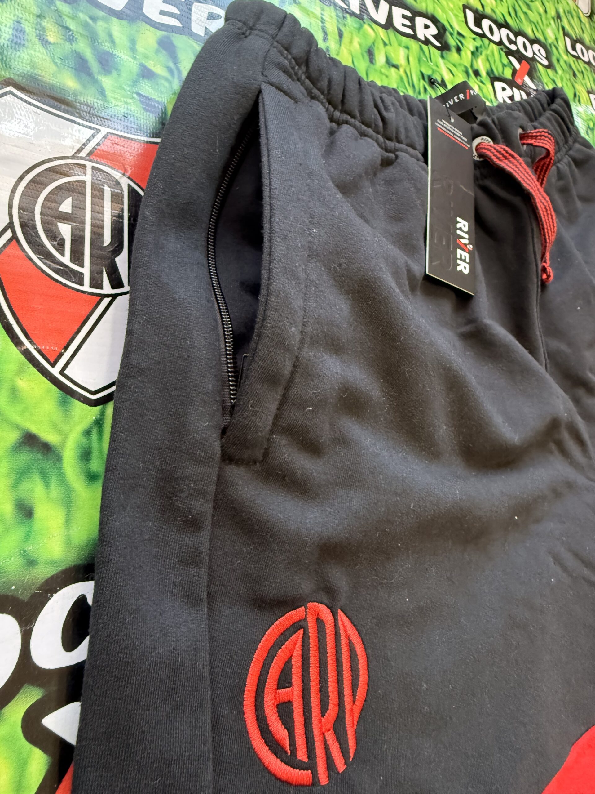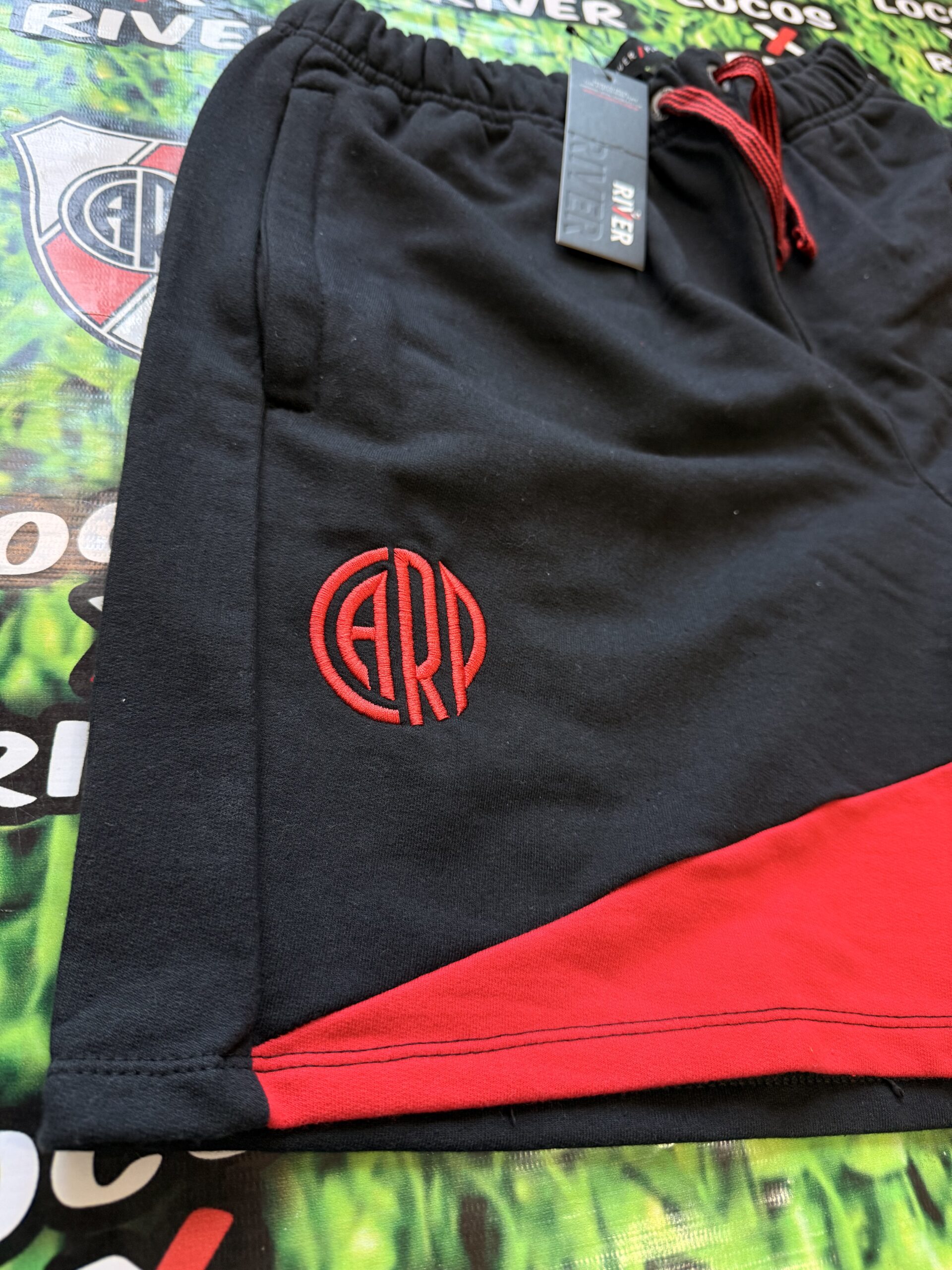 De base negra, presenta un recorte diagonal rojo que aporta un diseño distintivo y moderno dentro de la línea oficial de River Plate.