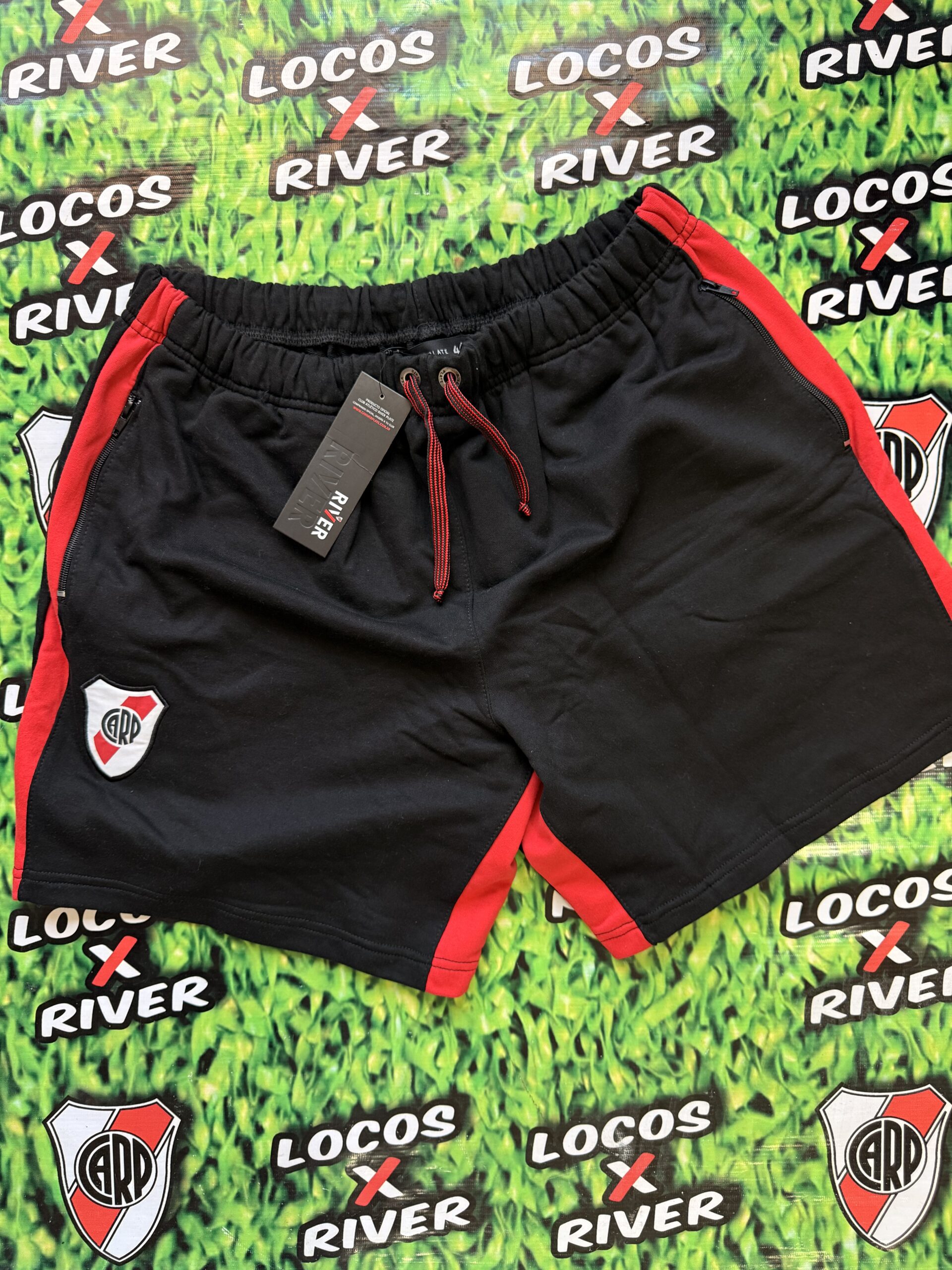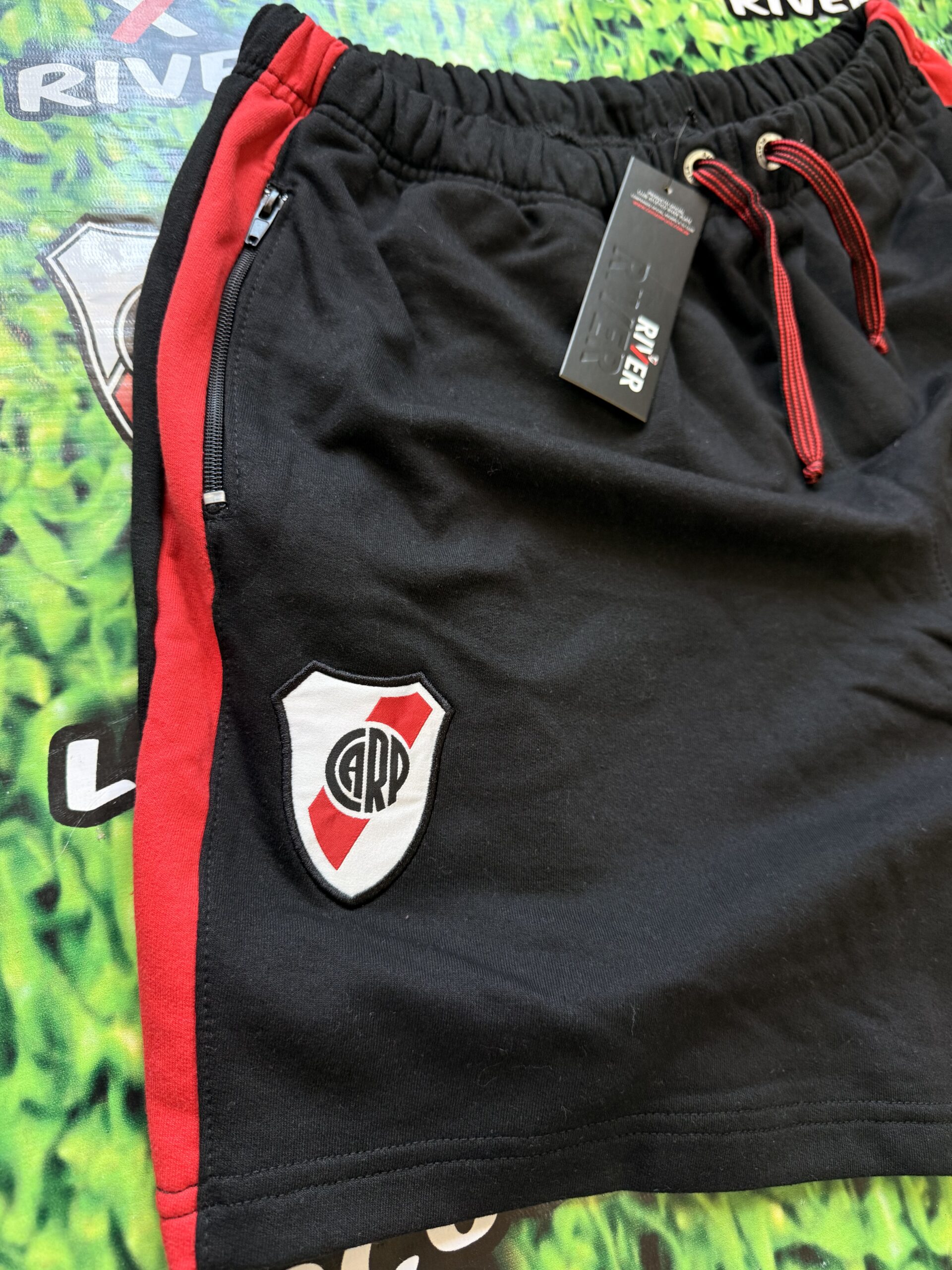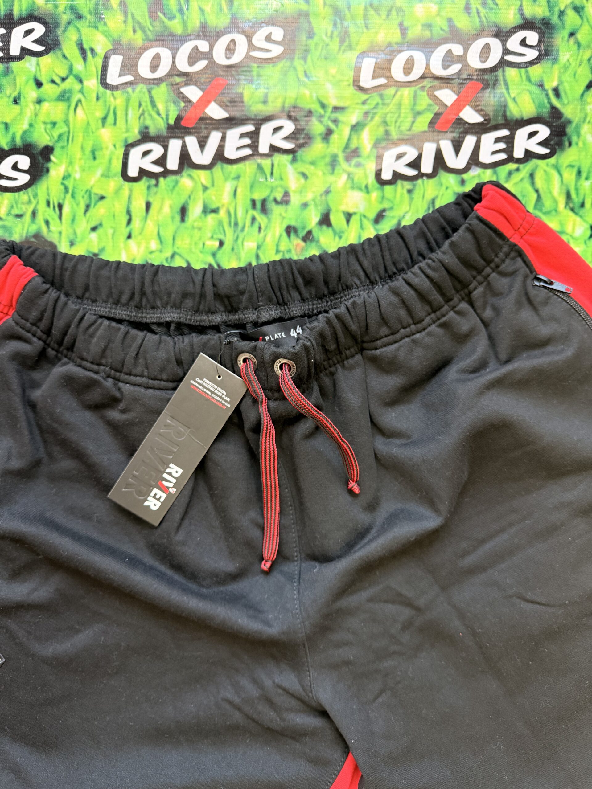 Bermuda Algodón Negra con Recortes Rojos – River Plate (Bolsillos con Cierre)