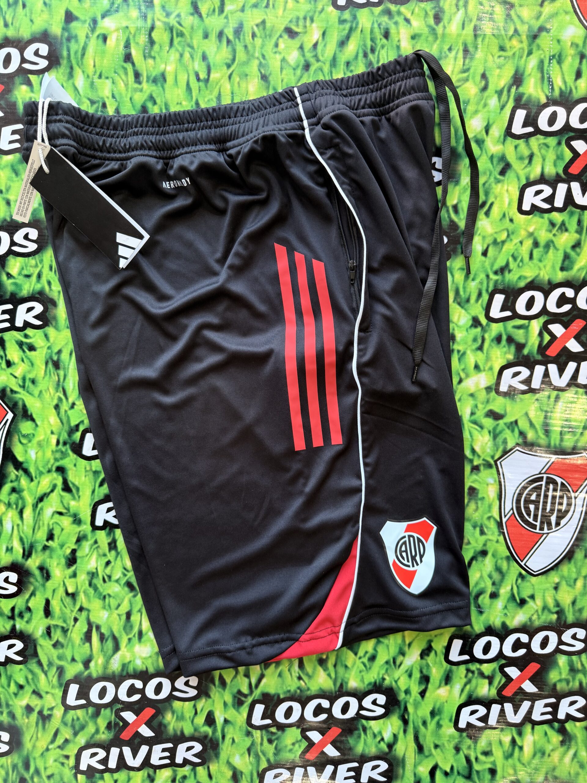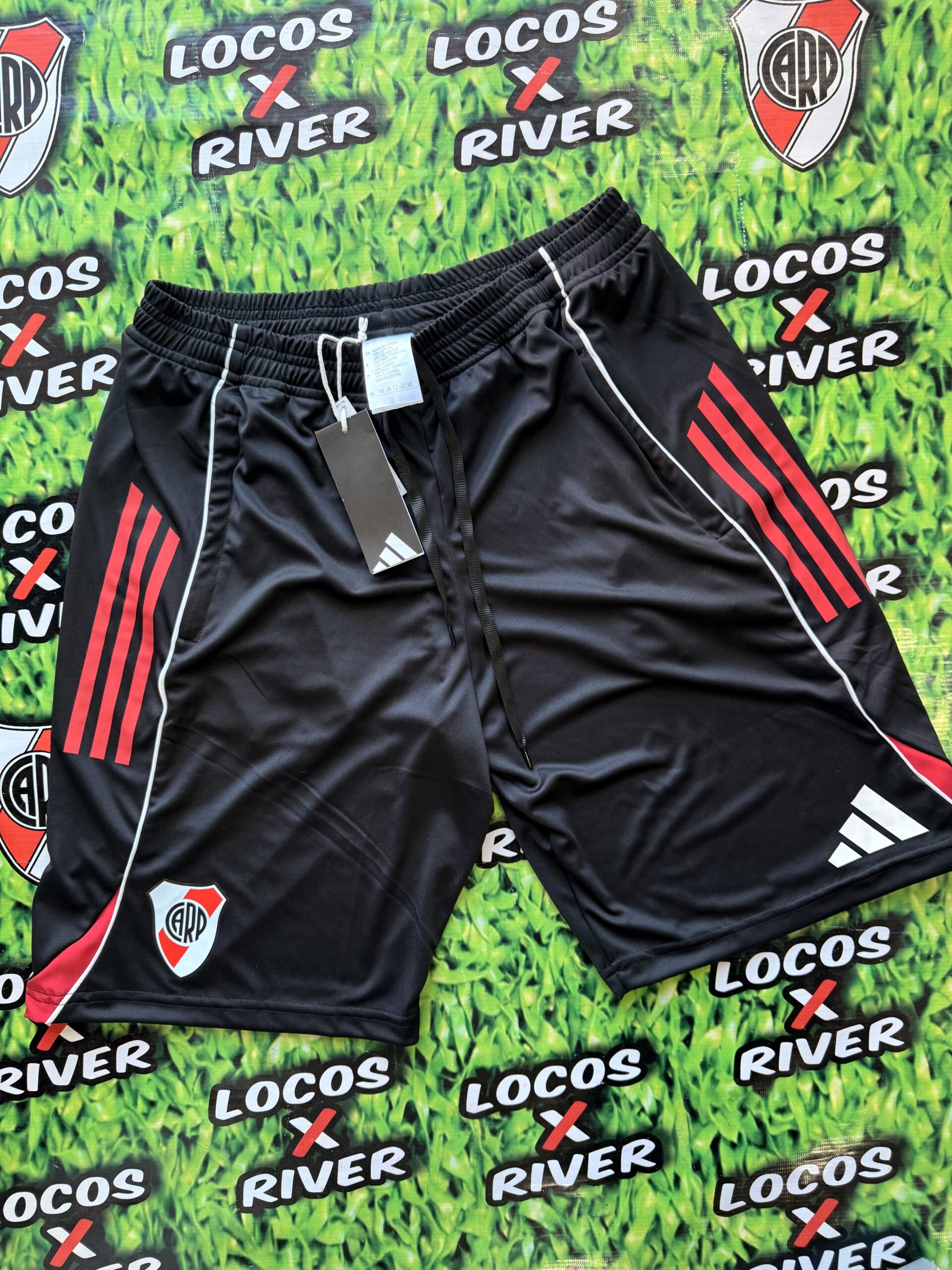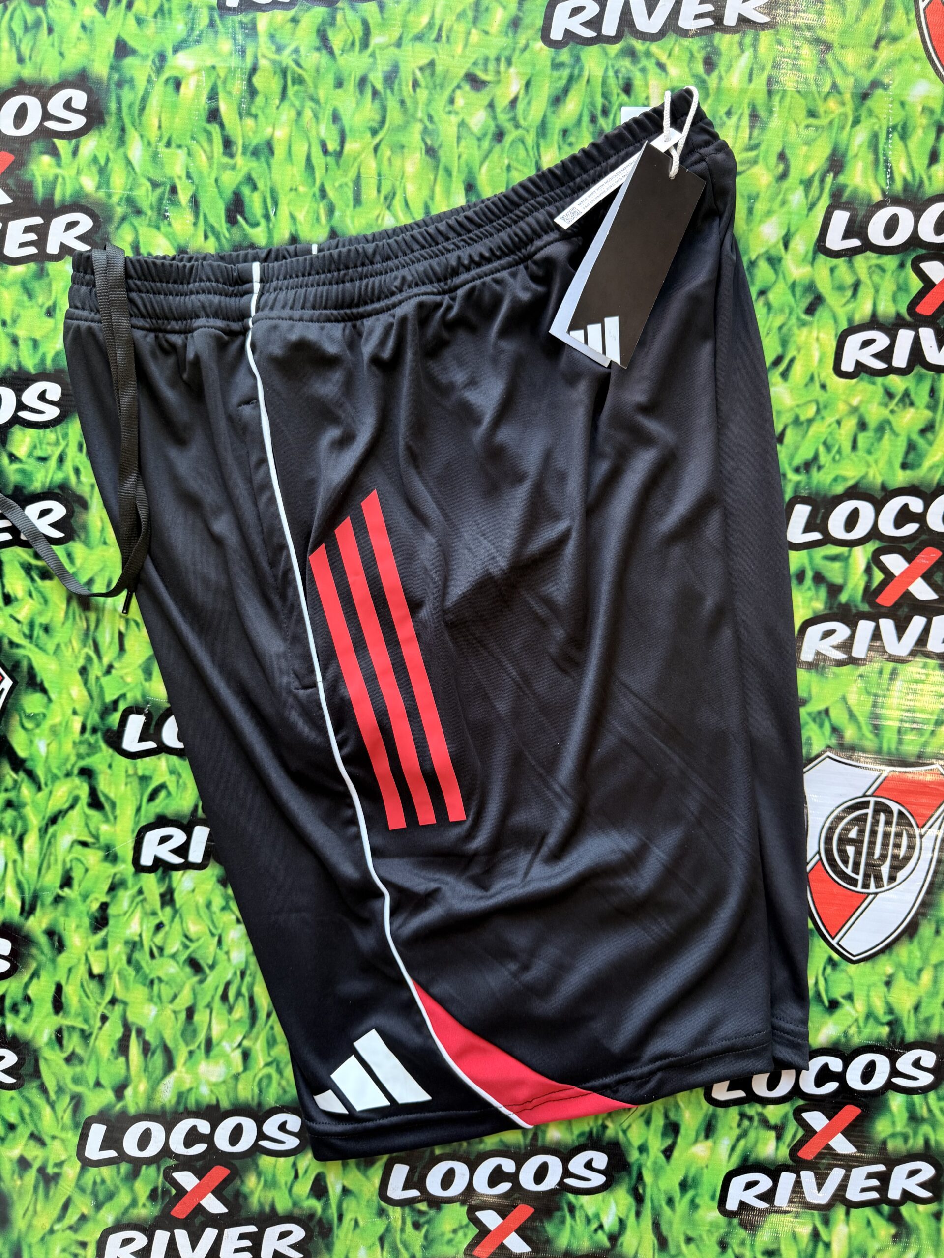 Bermuda Negra – Con Tiras Rojas y Escudo Estampado