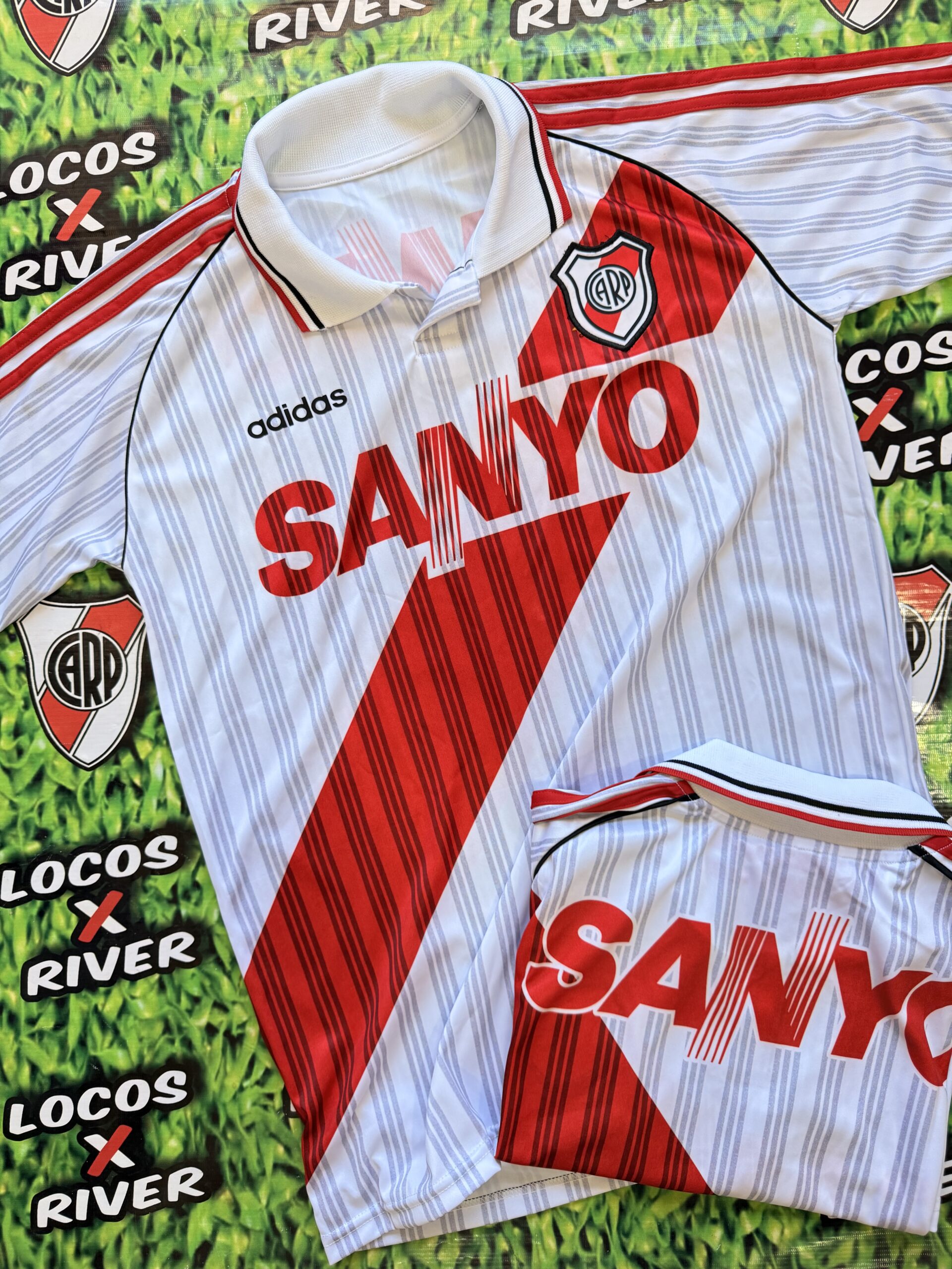 La Camiseta Sanyo 94/95 es uno de los modelos más icónicos en la historia de River Plate, recordada por su diseño clásico con la banda roja cruzada y el histórico sponsor SANYO en el frente.