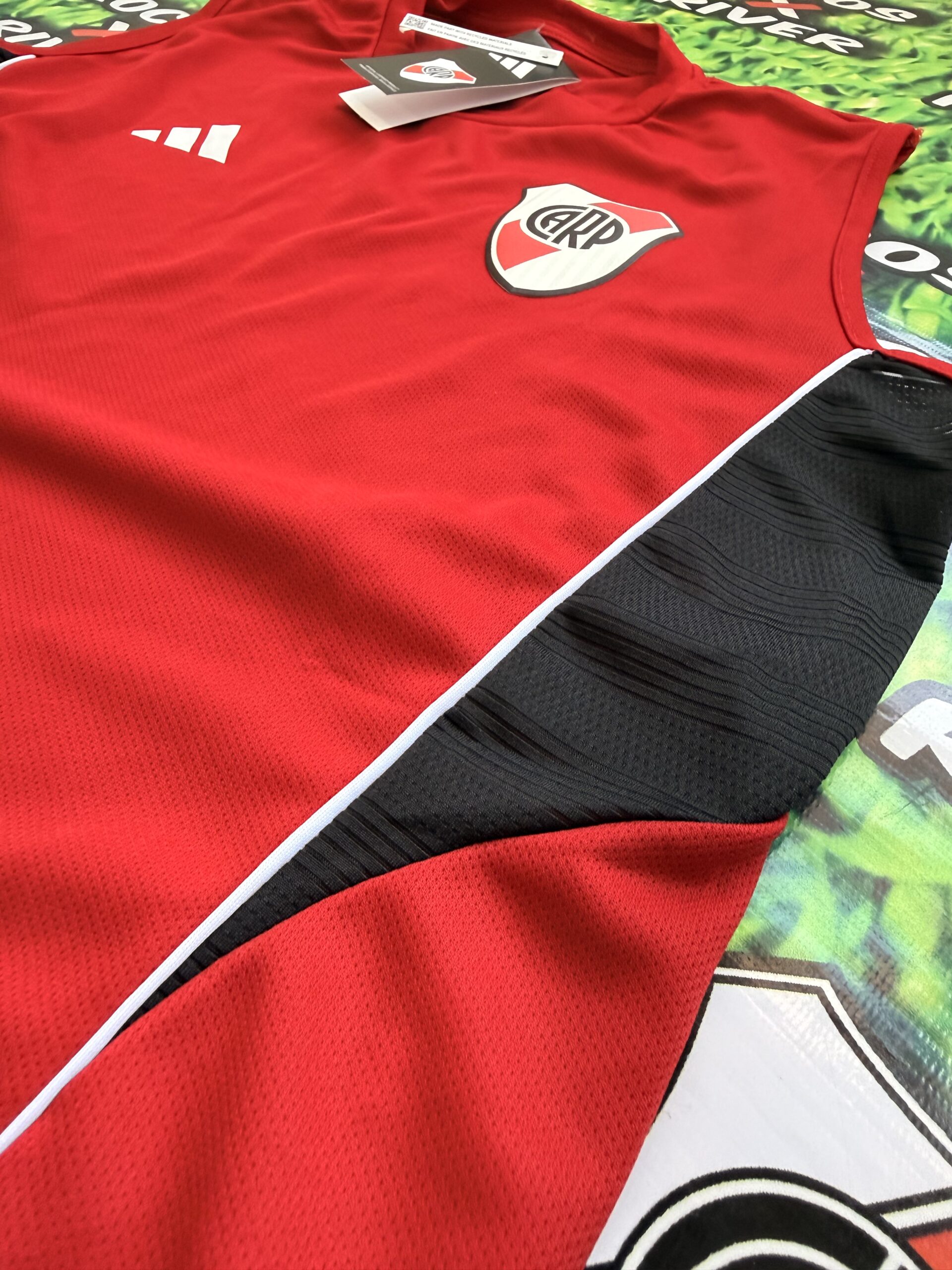 Incluye detalles característicos del club y escudo aplicado en vinilo manteniendo la identidad riverplatense sin sobrecargar la prenda.